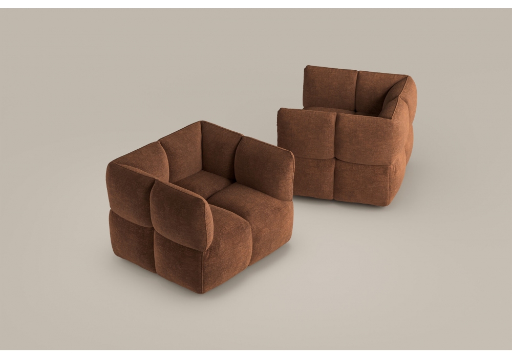 Brik designed by Martina and Massimo Castagna for Bonaldo is an armchair covered in different fabrics or leathers.