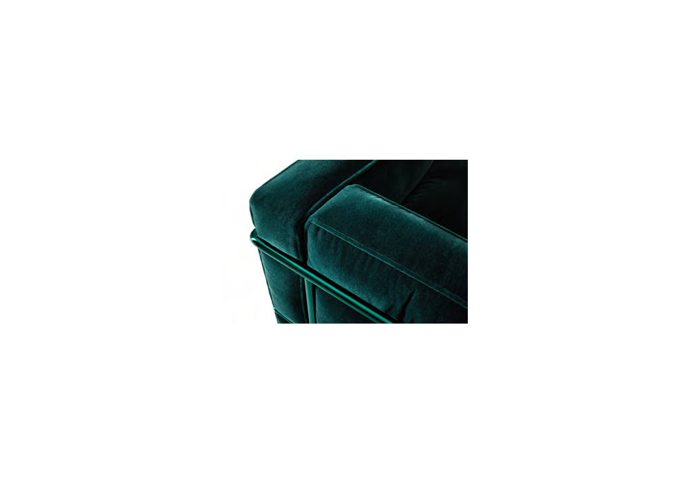 2 Fauteuil Grand Confort, Petit Modèle, Durable, 60 designed by Le Corbusier, Pierre Jeanneret, Charlotte Perriand for Cassina is an armchair upholstered in Lirico velvet and with a shiny metal structure.