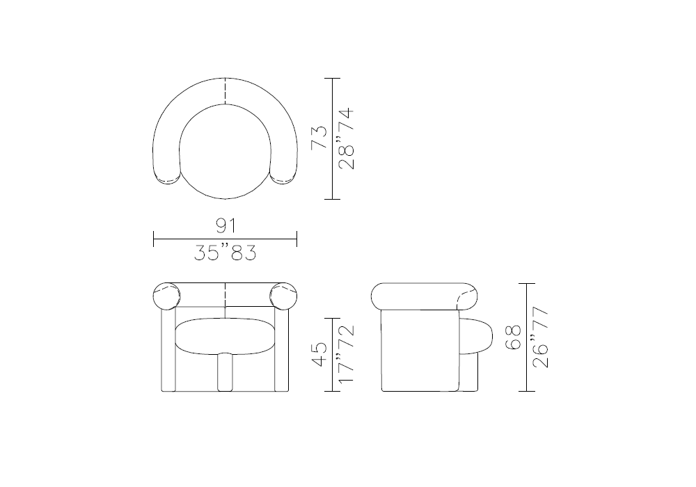 Jeanette designed by Andrea Parisio for Meridiani is an armchair covered in non-removable fabric in different finishes.