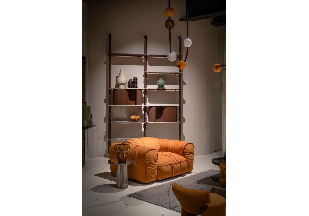 Chicago designed by Paola Navone for Baxter is an armchair with structure in fir and poplar plywood and padding in differentiated density polyurethane foam. Feet in walnut-stained beech. Upholstery in soft leathers only.