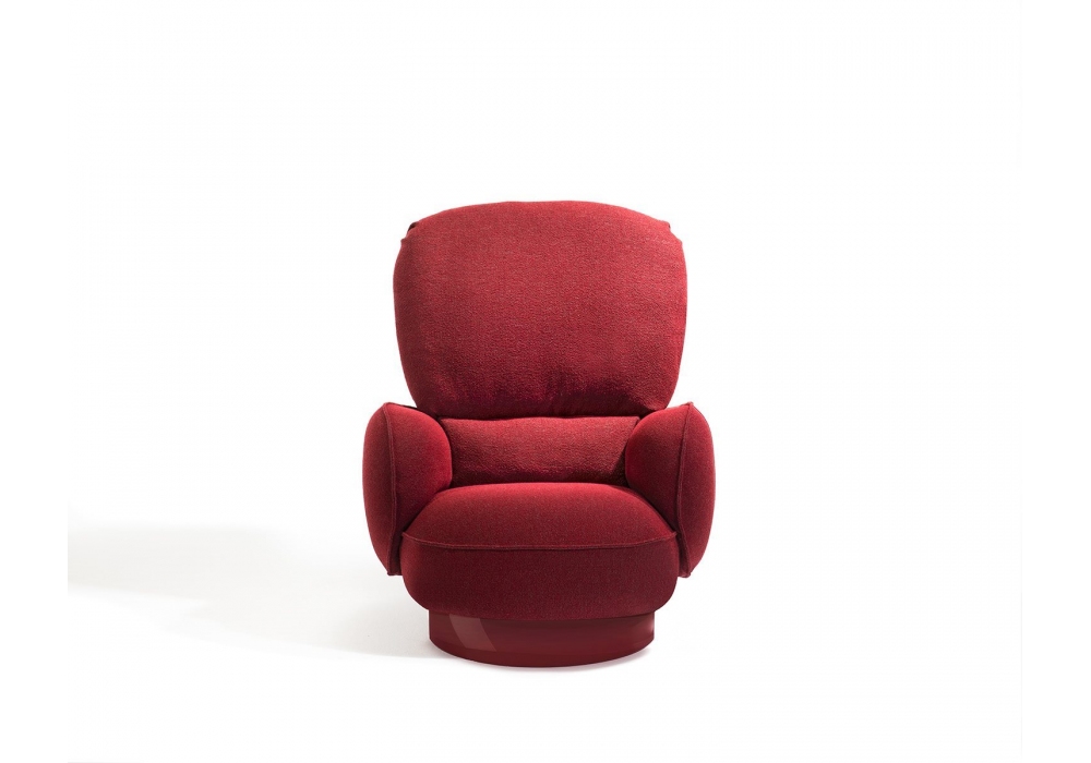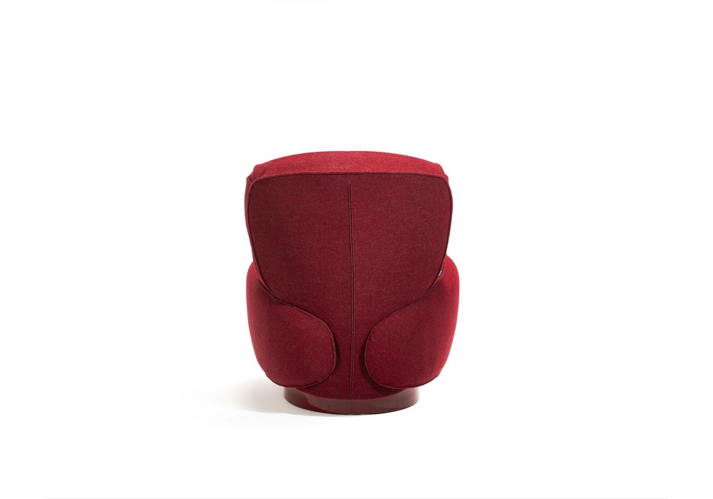 853 Yori-Kiri designed by Francesca Lanzavecchia for Zanotta is an armchair with a glossy painted swivel base, steel frame, padding in self-extinguishing polyurethane foam with plant-based polyols. Backrest cushion with recycled PET fiber padding. Removable fabric cover. The armchair is equipped with an integrated and adjustable synchronized mechanism, hidden inside the seat, which allows the backrest to oscillate or lock in any position.
