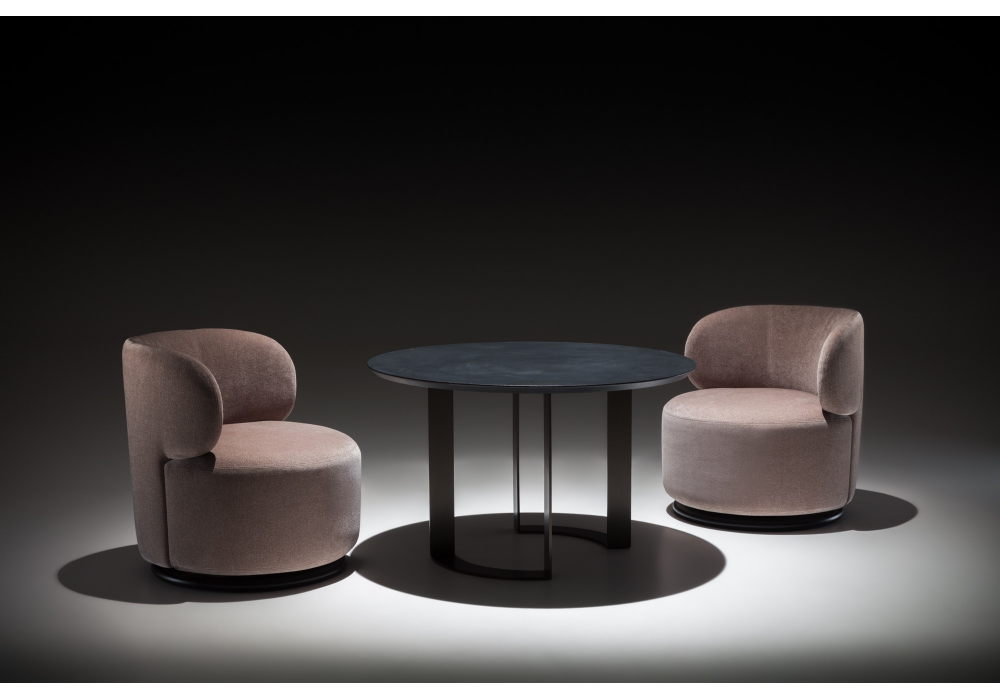 Milos designed by R&D for Twils is an armchair with a fixed or swivel base in black ABS. The upholstery is in different types of fabric or leather.