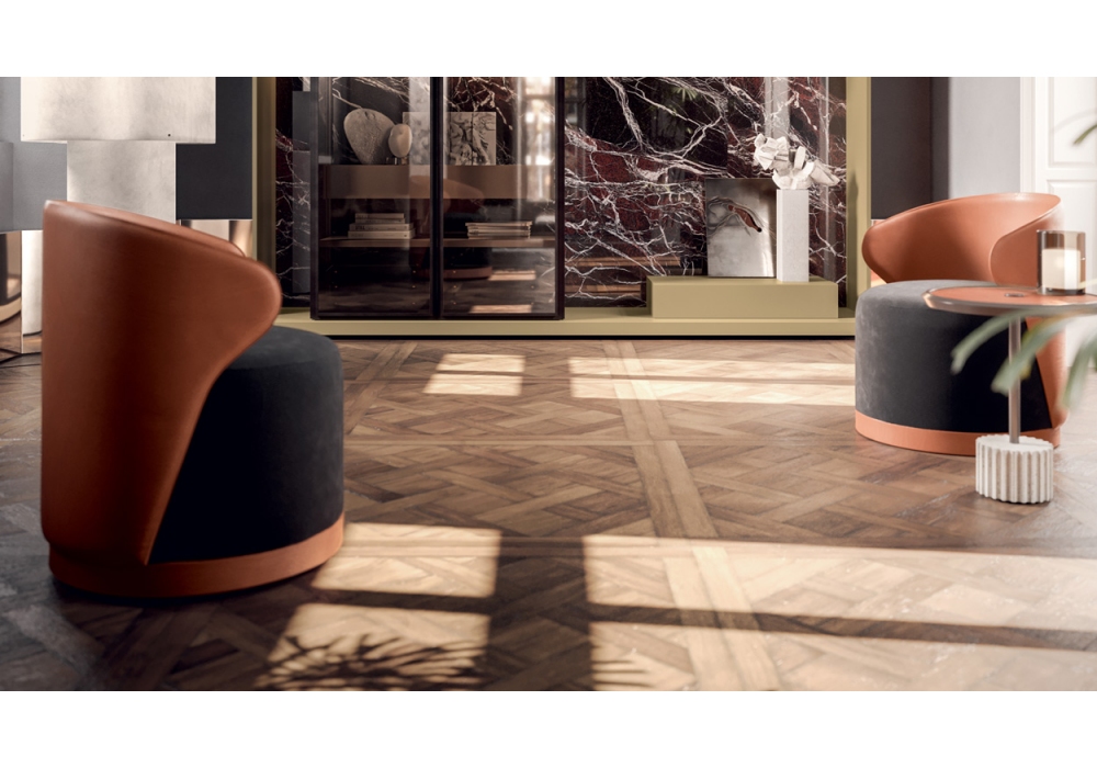 Dalia designed by Kico is a small armchair. It stands out for its elegant and versatile design, with a wraparound backrest upholstered in leather that lends refinement and comfort. The 35-density polyurethane foam padding with polyester wadding provides support, while the anti-lock ABS foot is concealed. Available in non-removable fabric or leather, it is embellished with visible arched stitching on the armrests and seat, a testament to craftsmanship.