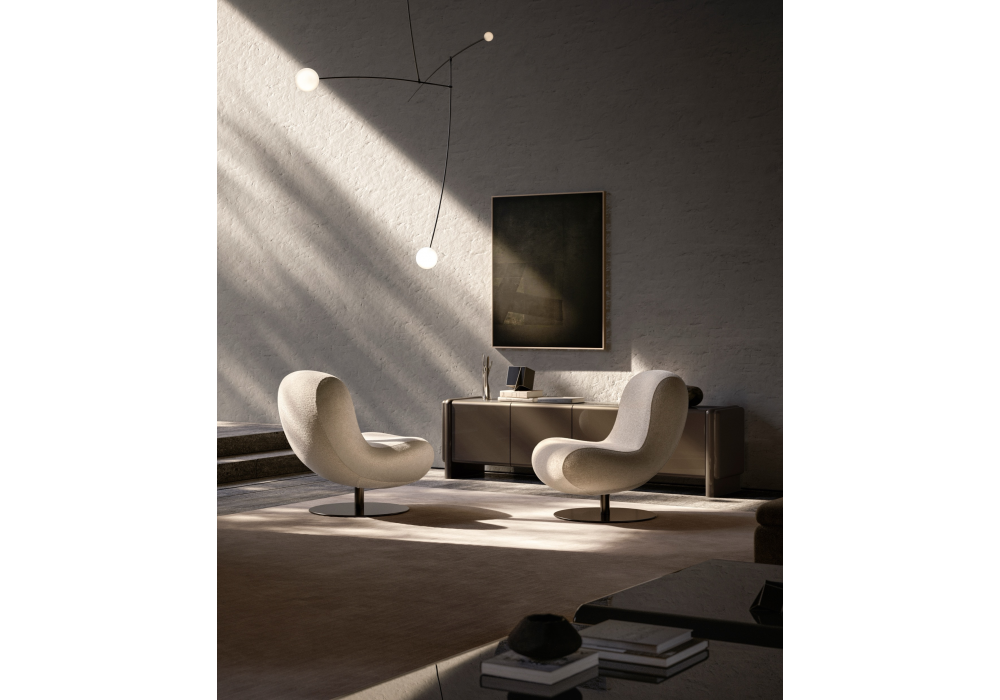 Bosco designed by Naoto Fukasawa for Molteni&C is an armchair inspired by the soft forms of the Tuscan landscape. The generous volumes and variable-density padding ensure comfort and ergonomics, while the seamless upholstery emphasizes the welcoming feel. The subtle stitching follows the curved profile without interrupting the surface. Complete with a swivel metal base with a central column, it offers freedom of movement and is available with a matching footrest for even more complete relaxation.