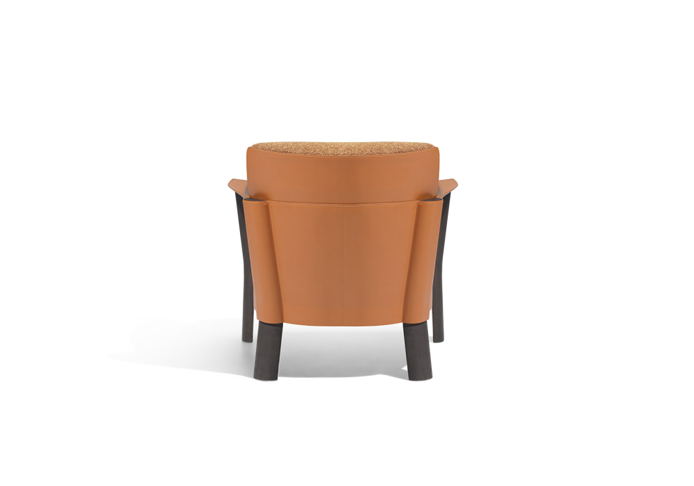 Armand designed by Christophe Delcourt for Molteni&C is an armchair with a steel frame covered in regenerated leather and solid ash legs. The seat is made of plywood with elastic straps and variable-density polyurethane padding. The thermoformed backrest is covered in leather with a cushion made of composite material and high-resistance polyurethane. Available with fabric or leather upholstery and finishes in coffee or amber oak.