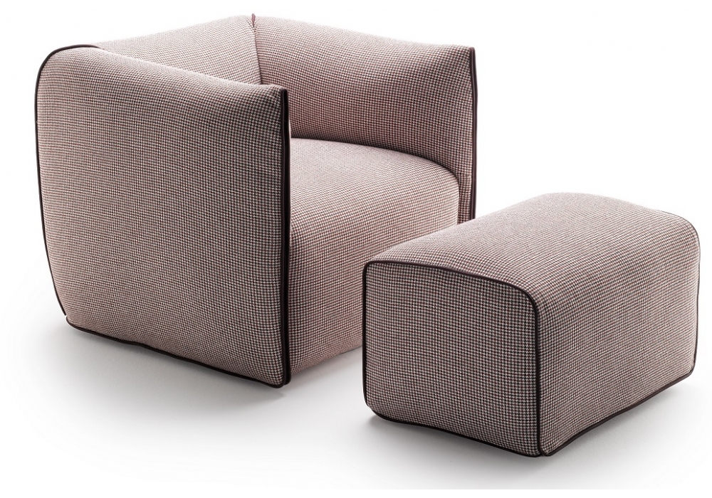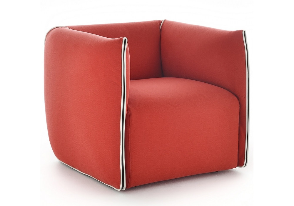 Mia MDF Italia ArmchairMia designed by Francesco Bettoni for MDF Italia is an armchair with load-bearing structure in solid wood and plywood, base with elastic straps, padding in differentiated density polyurethane foam and polyester wadding upholstery. The cover is removable and available in different fabrics and finishes. The armchair has a contrasting profile, in different colors.