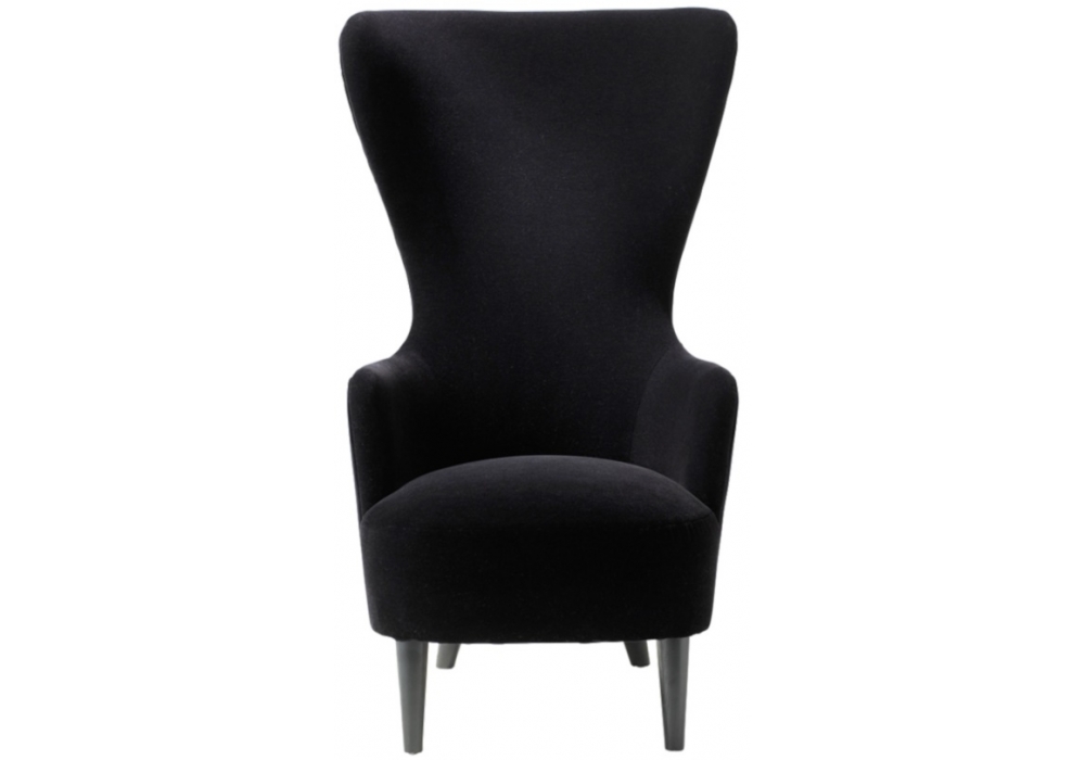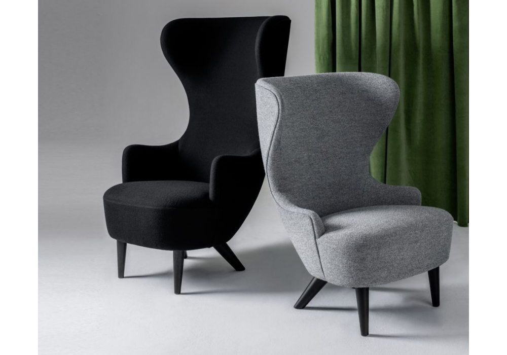 Wingback Chair designed by Tom Dixon is an armchair made with black oak legs and fabric covering in different finishes. Available in two dimensions.