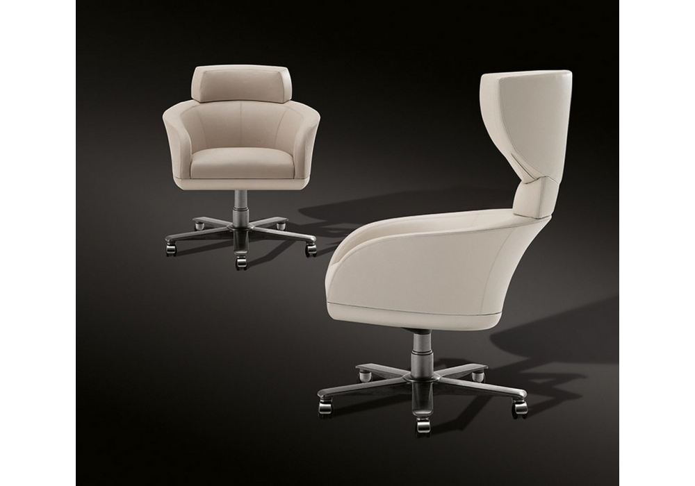 Selectus is a Swivel wing chair designed by Léon Krier for Giorgetti. Swivel wing chair with a fixed and tilting mechanism. The seat is adjustable in height. The upholstery is in fabric or leather.