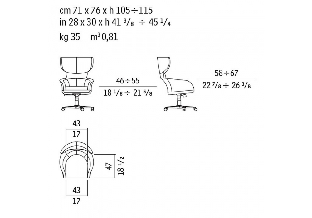 | Armrest height | 58 / 67 cm |