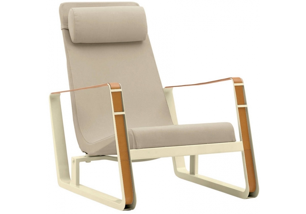 Cité is an armchair designed by Jean Prouvé for Vitra. Designed for a competition to furnish the student residence halls at the Cité Universitaire in Nancy, the Cité armchair is one of Jean Prouvé‘s early masterpieces. With distinctive runners made of powder-coated sheet steel and broad leather belts for armrests, this dynamic looking armchair was used by Prouvé in the living room of his own home.