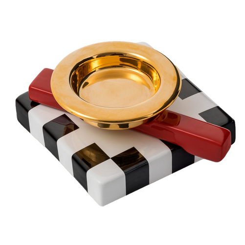 Squash designed by Maria Sanchez for Memphis Milano is an ashtray made in a limited edition of 250 pieces in four new color combinations: gold, yellow, purple and blue.