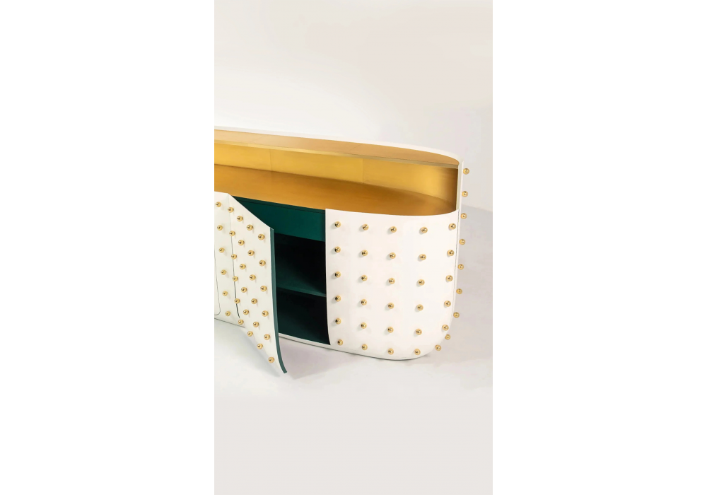 Bar Oasis designed by Richard Hutten for Scarlet Splendor is a bar cabinet made of MDF, plywood and brass.