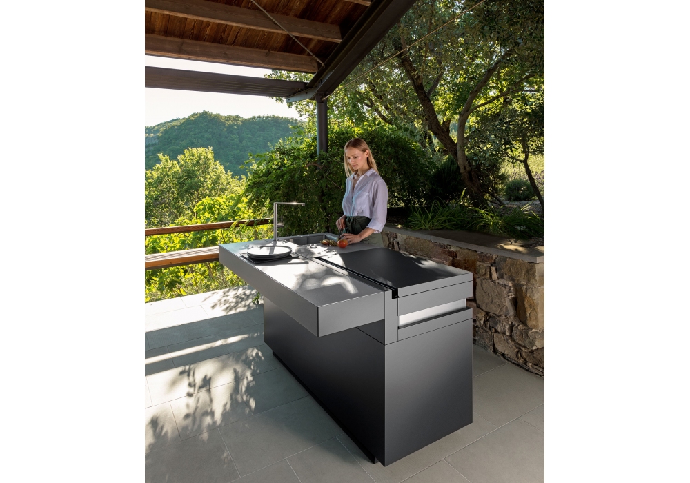 Tikal designed by Nicola De Pellegrini for Talenti is an outdoor kitchen with three or two modules. The structure is modular with different modules and accessories.