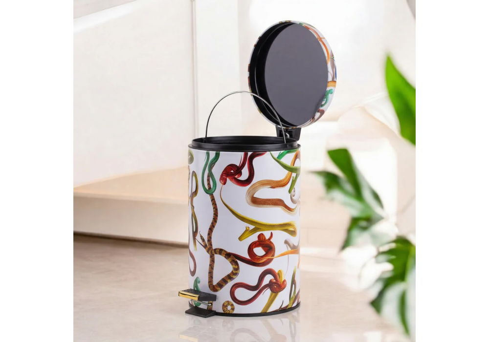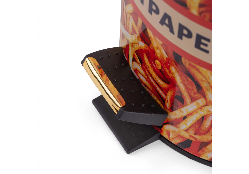 Dustbin Toiletpaper designed by Toiletpaper for Seletti is a cylindrical waste bin made of metal and painted plastic with a special pedal to facilitate opening the lid. Dustbin is available in different models.