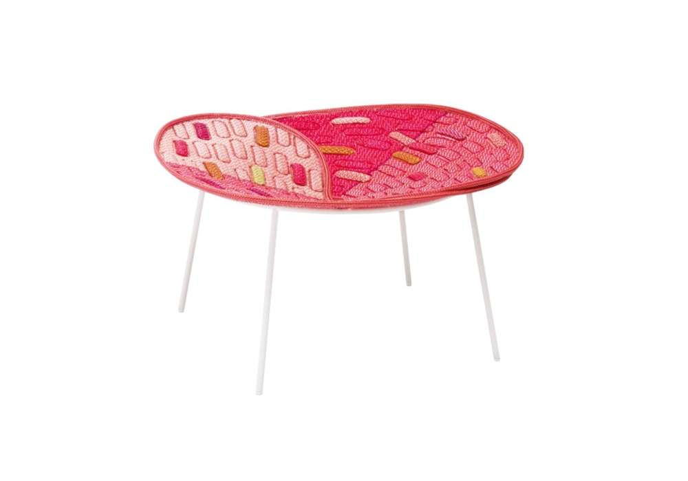 Hana-arashi / Mottainai designed by Nendo is a basket with a steel base made with two layers of Maris fabric. Support structure in glossy painted stainless steel complete with plastic tips. Pairing colors generates different colour results each time. Suitable for outdoors.