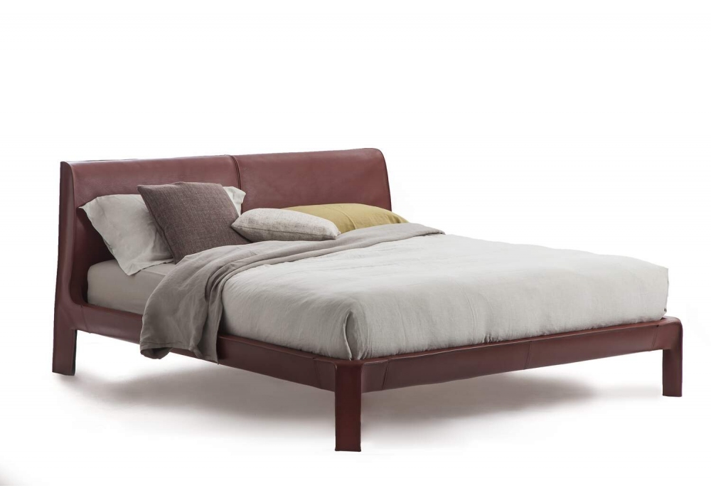 L50 Cab Night, designed by Mario Bellini for Cassina, is a bed with padded headboard, bed frame and legs covered in soft and thick leather and rigid leather in seven shades: black, Bulgarian red, natural, taupe, blue. The bed is available in versions with fixed or wall-mounted headboard. Structure in poplar plywood and solid beech, headboard padding in polyurethane foam.