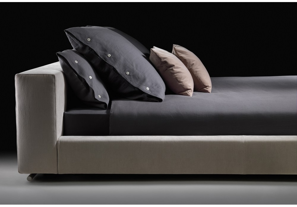Groundpiece is a bed designed by Antonio Citterio for Flexform. Base with platform fitted with wooden slats. Headboard: in wood with polyurethane padding covered with a protective fabric lining. Feet: in metal treated with epoxy lacquer. Removable fabric or leather covers. Mattress not included.