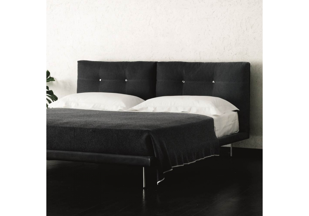 Rod Bed designed by Eero Koivisto for Living Divani features neat yet elegant outline: an invitation to serenity of calm nights. Bed with HPL headboard panel. Bedstead structure in steel with black epoxy powder coating padded in differentiated density polyurethane foam. Stainless steel feet, polished or matt satin-finish, screwed to the base with a bushing. Fabric or leather upholstery, both fully removable by Velcro fastenings.