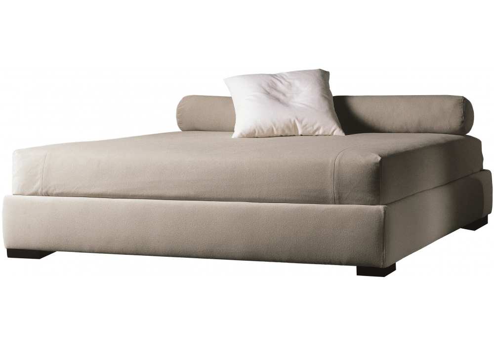 Derek designed by Andrea Parisio for Meridiani is a upholstered bed with removable cover and fixed cover for leather version. Wooden frame that can be disassembled with metal cross bar. Feet in black, light and almond stained wood.