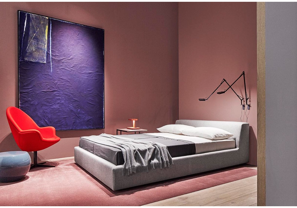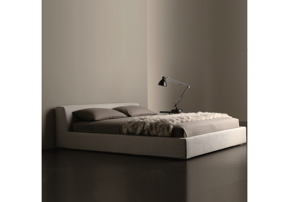 Louis Bed designed by Andrea Parisio for Meridiani is a upholstered bed with removable cover and fixed cover for leather version. Wooden frame that can be disassembled with metal cross bar. Feet in black stained wood.