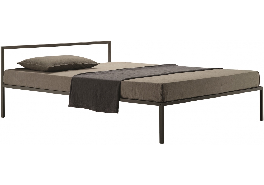 1706 Nyx designed by Emaf Progetti for Zanotta is a bed with structure made of varnished steel. Springing in bent beech strips, with stiff ness adjusters.