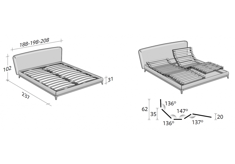 | Mattress size | 160 x 200 cm; 170 x 200 cm; 180 x 200 cm. |