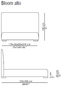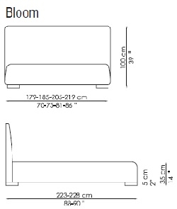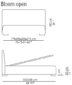 Bloom designed for Bonaldo is a double bed. The covering is completely removable and is available in fabric and leather. The bed is also available in container version Bloom open, with high or low headboard.
