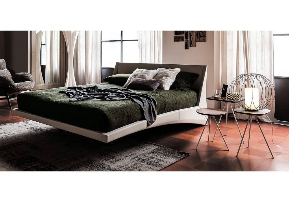 Dylan designed by Andrea Lucatello for Cattelan Italia is a bed with chrome painted steel feet. Upholstery in fabric, eco-leather or leather. Slatted base included, available in different dimensions.