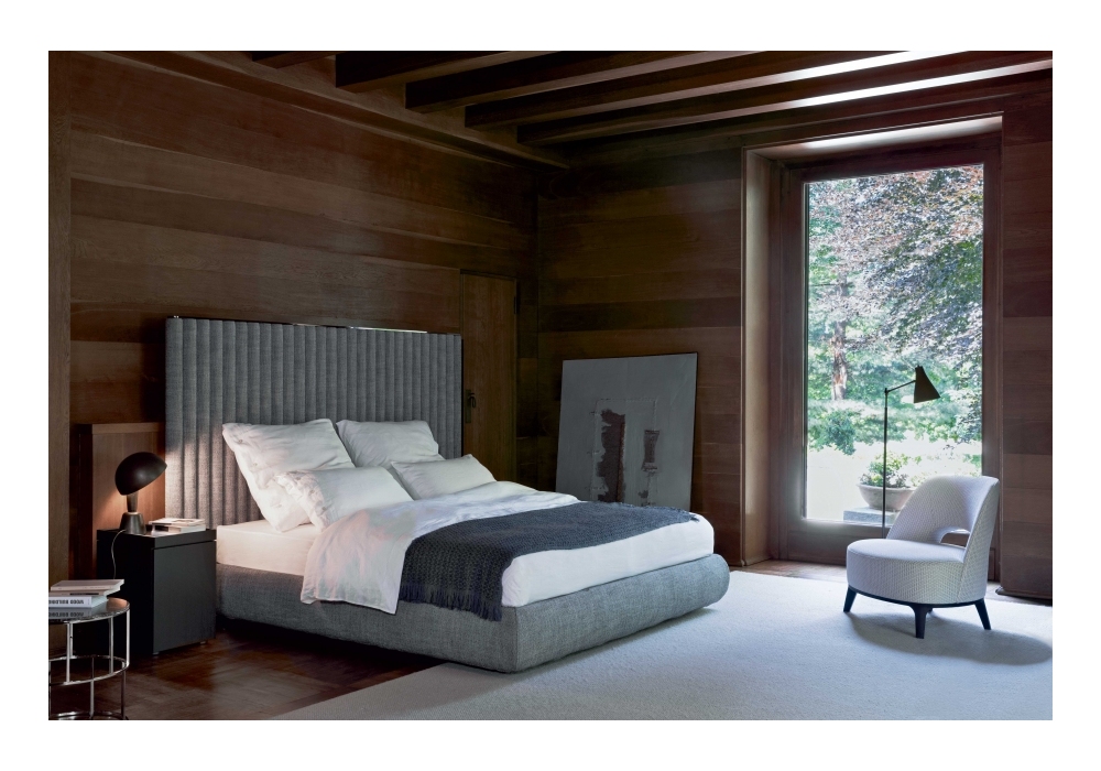 Biarritz Slim designed by Samuel Accoceberry for Flexform is a bed of the Mood collection. Bed head and base in wood with polyurethane padding covered with a protective fabric. Bed head upholstery available in different finishes of fabric or leather.