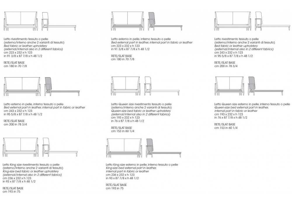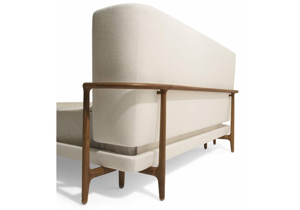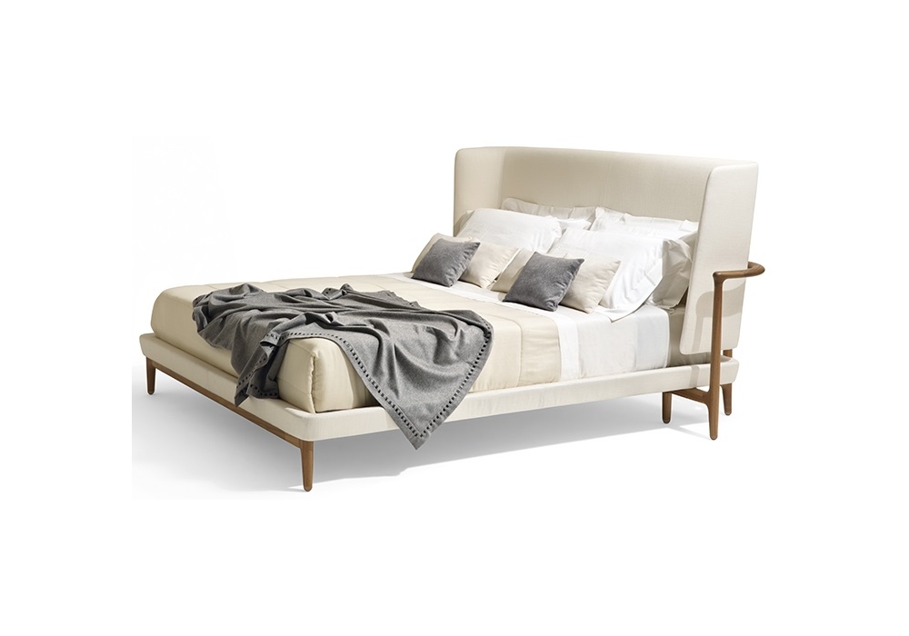 Pegaso designed by Roberto Lazzeroni for Giorgetti is a double bed with wooden structure in solid canaletto and headboard in Polimex. Metal tips painted in bronze colour and removable upholstery available in fabric or leather. The outer shell and internal part of the headboard can be upholstered in 2 different fabrics or leathers. Also available in 4 sizes.