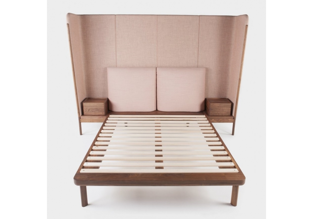 Dubois Tall designed by Luca Nichetto for De La Espada is a bed with headboard upholstered in fabric or leather and wooden structure available in different finishes. Also available in 4 dimensions and 2 versions: with or without bedside cabinets. Mattress not included!