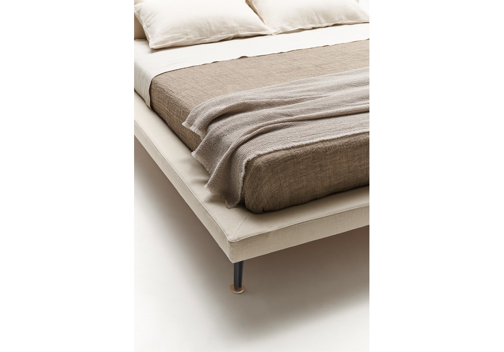 Floyd-Hi designed by Piero Lissoni for Living Divani is a bed characterized by the purity of the lines. Two large cushions fit into the headboard. Metal feet. Available in different sizes with fabric or leather upholstery.