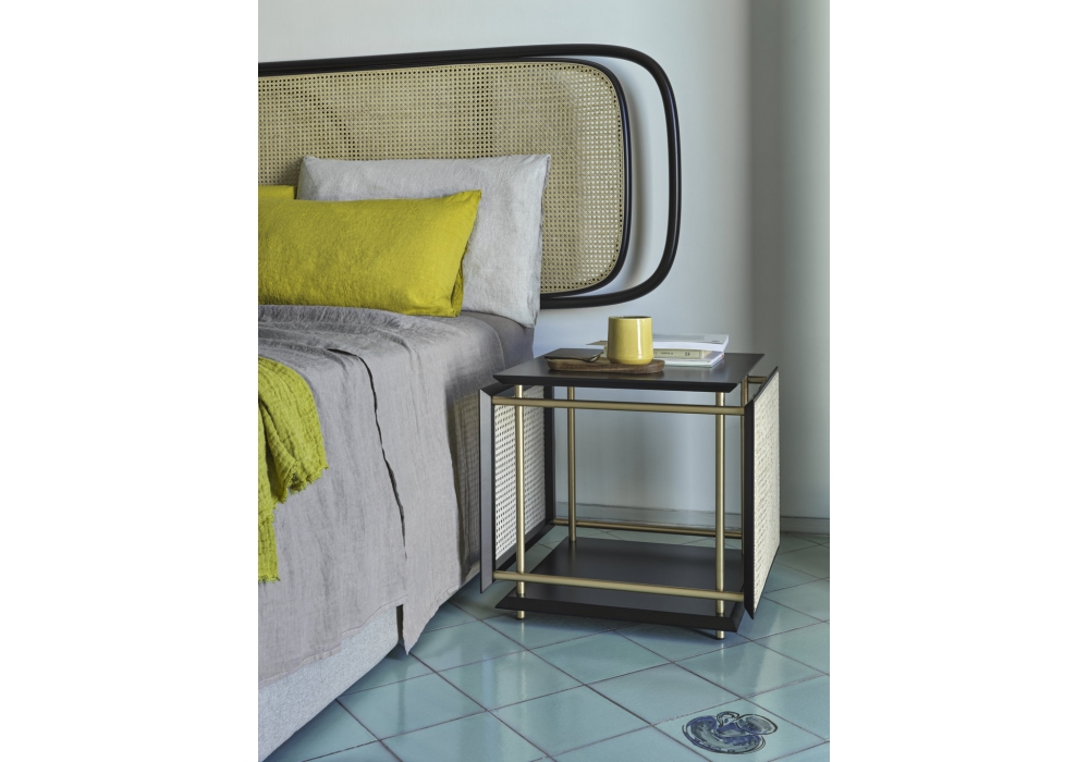Rue designed by GamFratesi for Gebrüder Thonet Vienna is a headboard with structure in curved beech, available in different finishes. Central element in Vienna straw.