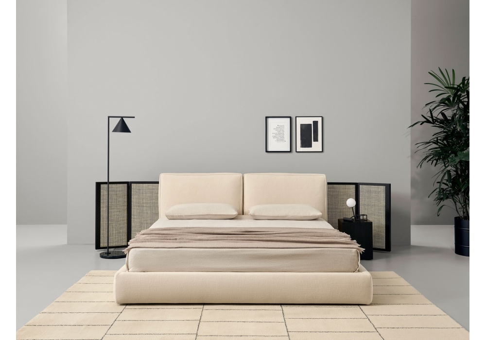 Byron designed by Piero Lissoni for Porro is a bed composed of high upholstered bed frame slightly raised from the floor, soft headboard and the paravent at the bottom.