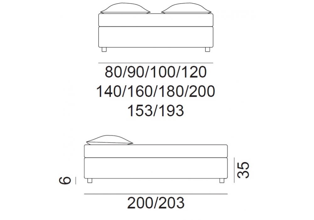| Mattress size | 80 x 200 cm; 90 x 200 cm; 100 x 200 cm; 120 x 200 cm; 140 x 200 cm; 160 x 200 cm; 180 x 200 cm; 200 x 200 cm; 153 x 203 cm; 193 x 203 cm; |
