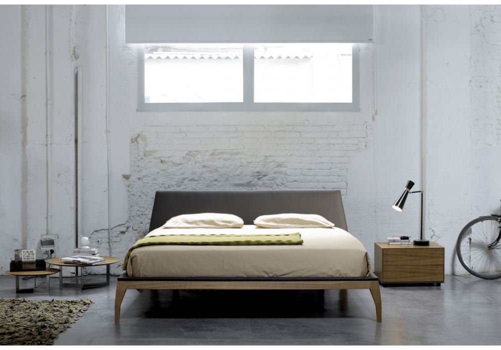 Bel designed by Ibon Arrizabalaga for Treku is a bed with a wooden structure in different finishes, a headboard and a bed frame in fabric or leather. Available for different mattress sizes. Slat and mattress not included.