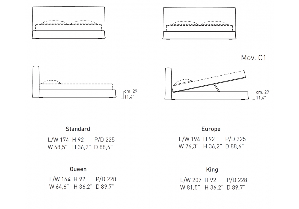 | Dimensions | 174 x 225 x H 92 cm(Standard); 164 x 228 x H 92 cm(Queen); 194 x 225 x H 92 cm(Europe); 207 x 228 x H 92 cm(King). |