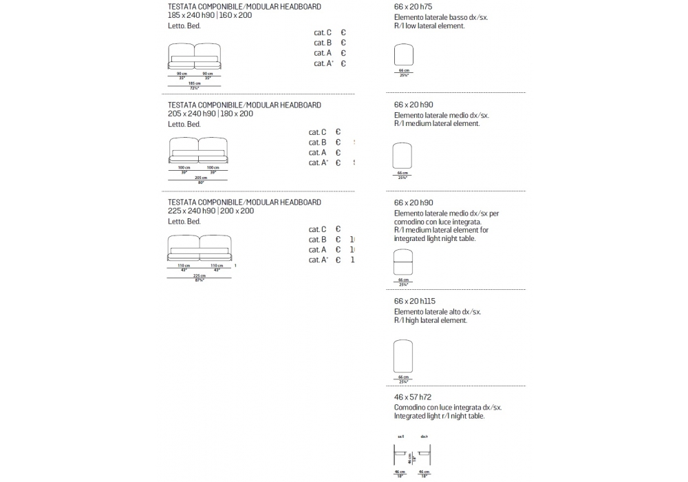 | Dimensions | 185 x 240 x H 90 cm; 205 x 240 x H 90 cm; 225 x 240 x H 90 cm. |