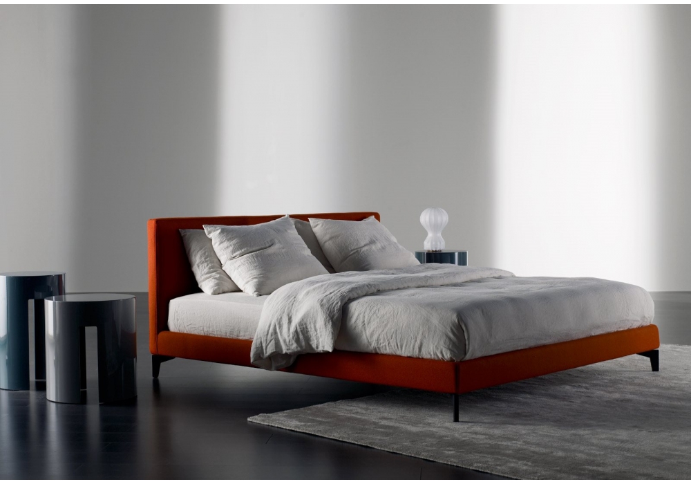 Stone Up designed by Andrea Parisio for Meridiani is a upholstered bed with feet in metal. Wooden frame that can be disassembled with metal cross bar. Removable cover and fixed cover for leather version.