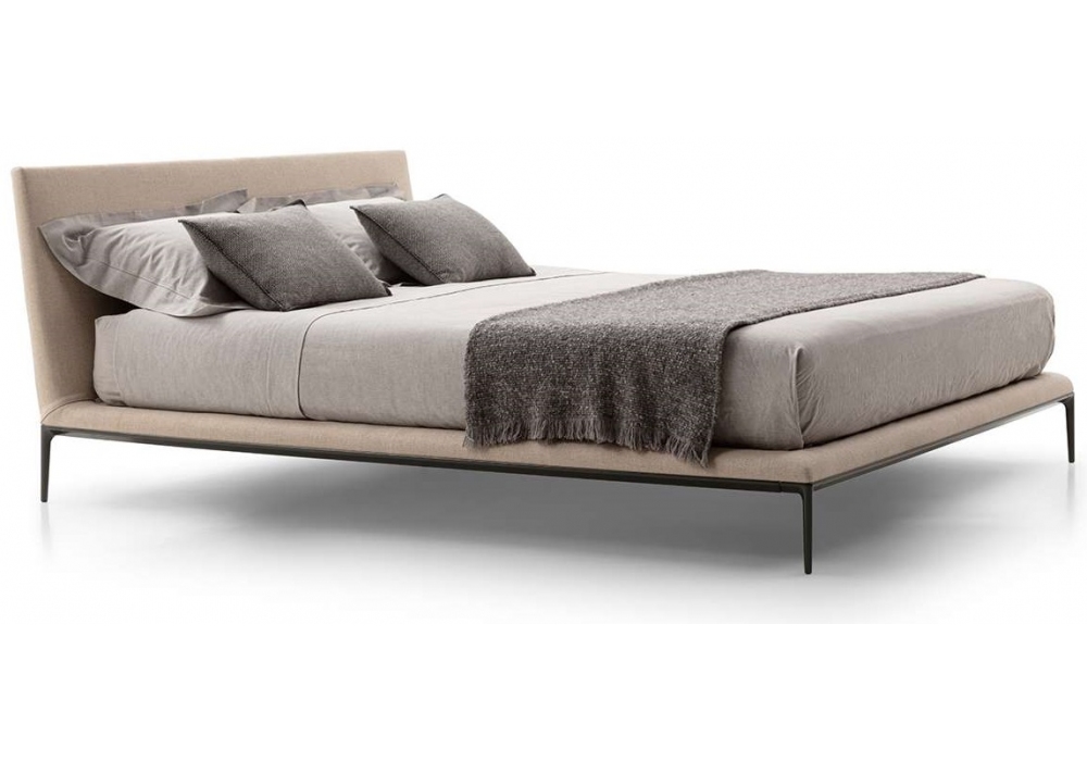Atoll designed by Antonio Citterio for B&B Italia is a bed with aluminum structure in polished brushed finish, black chrome or pewter varnished. Upholstery available in fabric or leather.