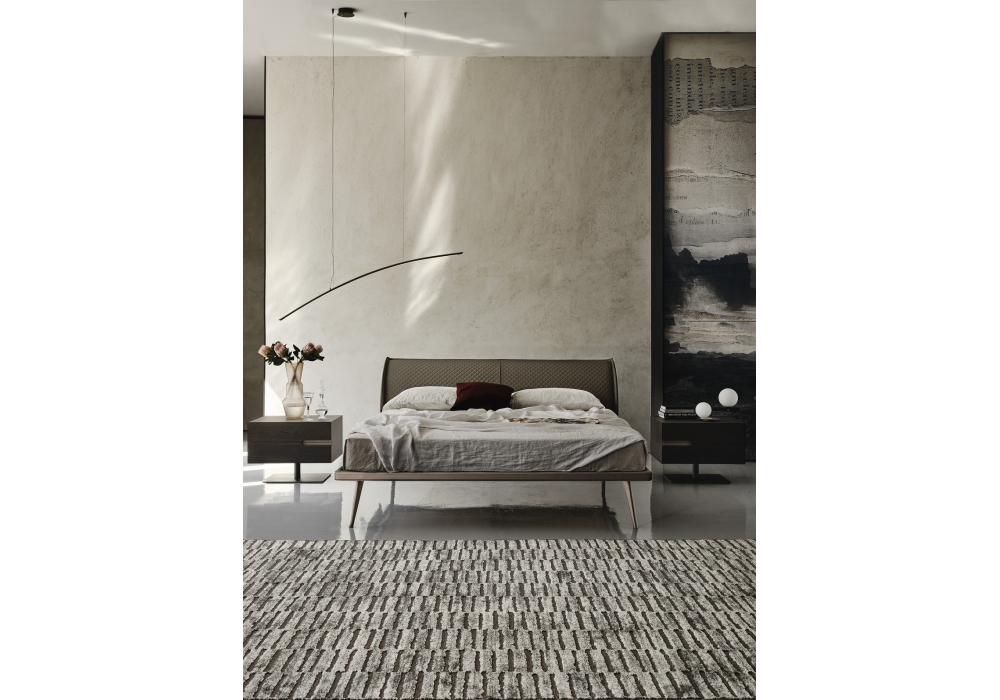 Ayrton designed by Andrea Lucatello for Cattelan Italia is a bed with upholstered headboard with covering in leather or fabric. Embossed steel structure. Slatted base included, available in different dimensions.