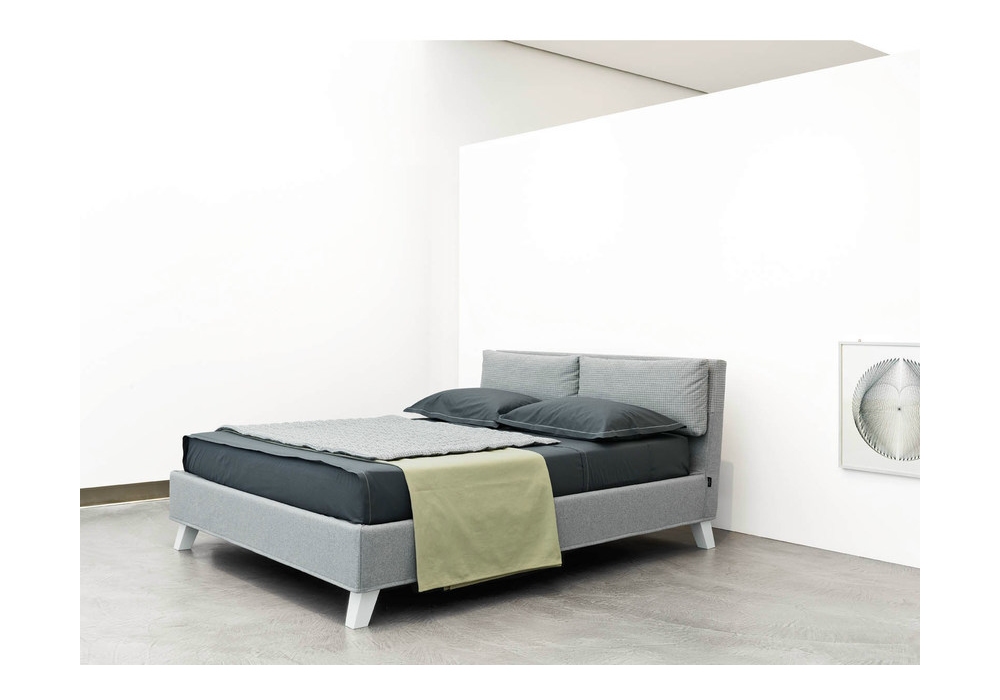 Bahamas designed by Orizzonti Design Center for Casamania & Horm is a padded bed with removable upholstery in fabric, leather or faux-leather. Fixed slatted base, bed frame outside the mattress and feet in beech wood included in the price. Available in different dimensions.