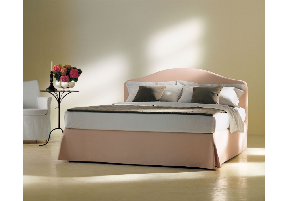 Elba Plus designed by Orizzonti Design Center for Casamania & Horm is a padded bed with removable upholstery in fabric or faux-leather. Fixed slatted base, bed frame outside the mattress and feet in beech wood included in the price. Available in different dimensions.