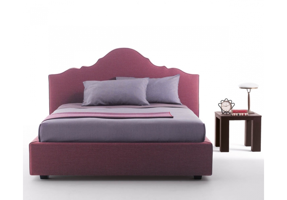 Flores designed by Orizzonti Design Center for Casamania & Horm is a padded bed with removable upholstery in fabric, leather or faux-leather. Fixed slatted base, bed frame outside the mattress and feet in beech wood included in the price. Available in different dimensions.