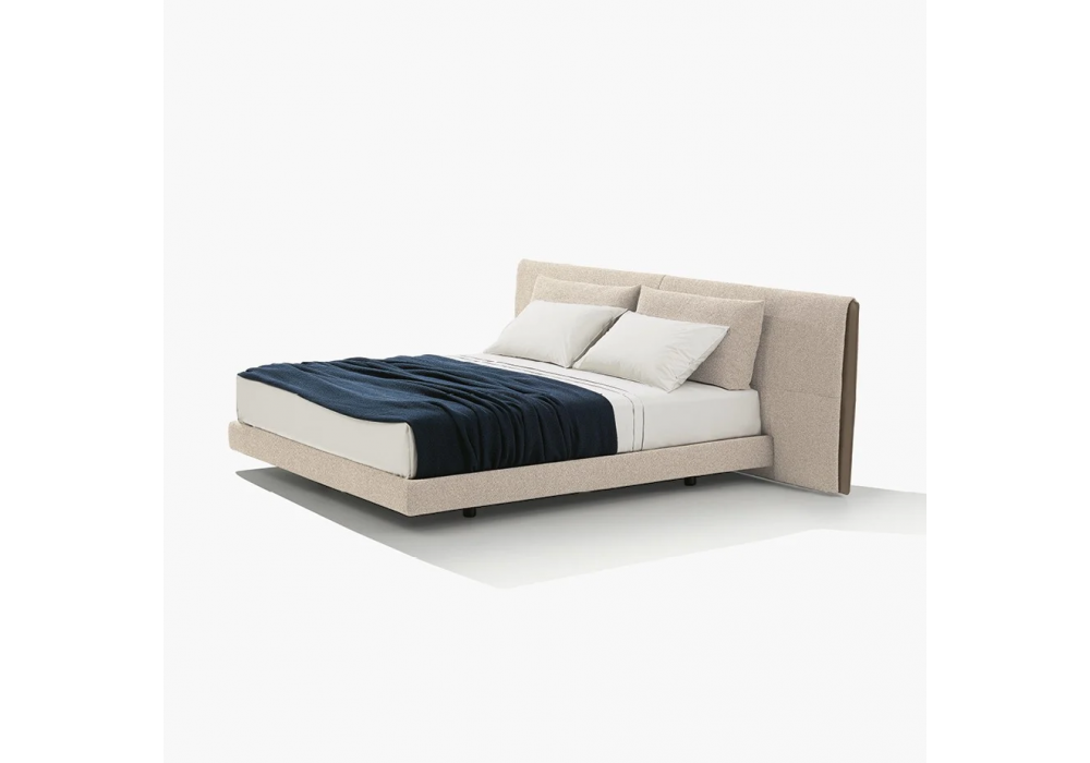 Yume designed by Jean Marie Massaud for Poliform is a bed with padded wooden base and covered in fabric or leather. Padded headboard with cover in fabric or leather and side inserts in hide-leather.