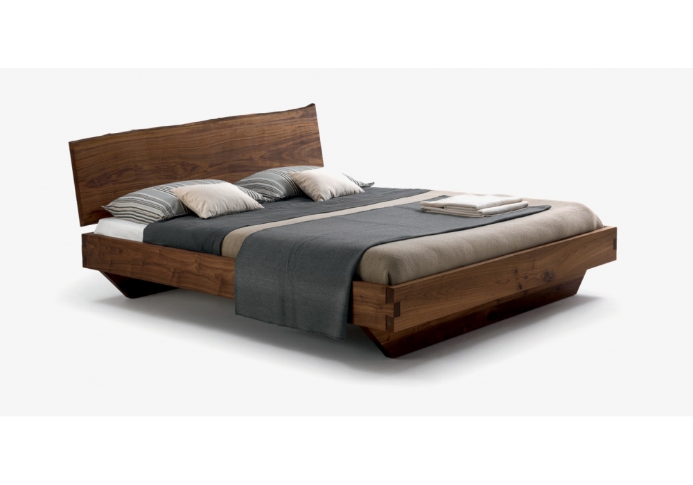Natura 6 designed by C.R. & S. Riva 1920 is a bed made entirely of solid wood, characterized by a headboard consisting of a single table with a natural upper edge and a bed frame with comb joint made entirely by hand.