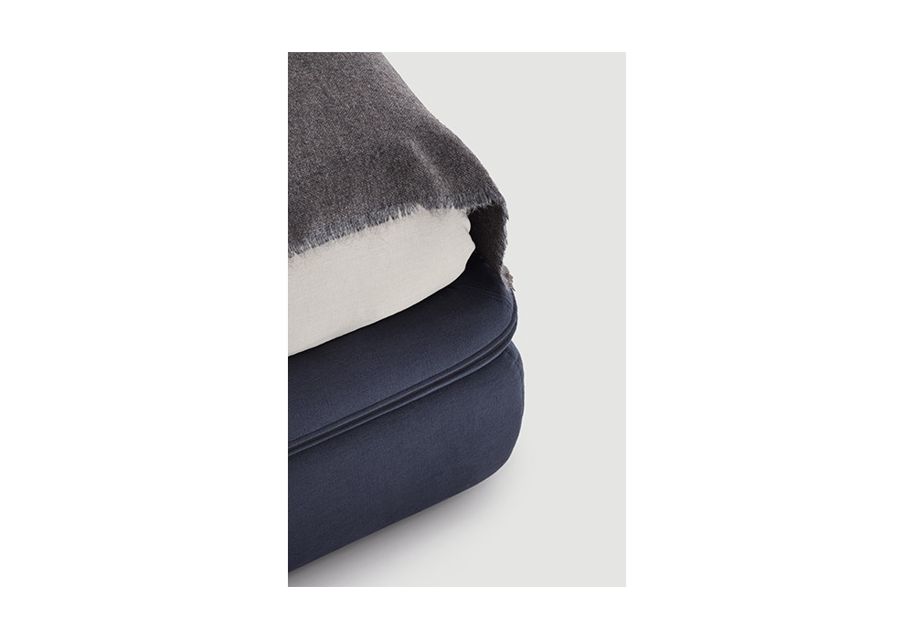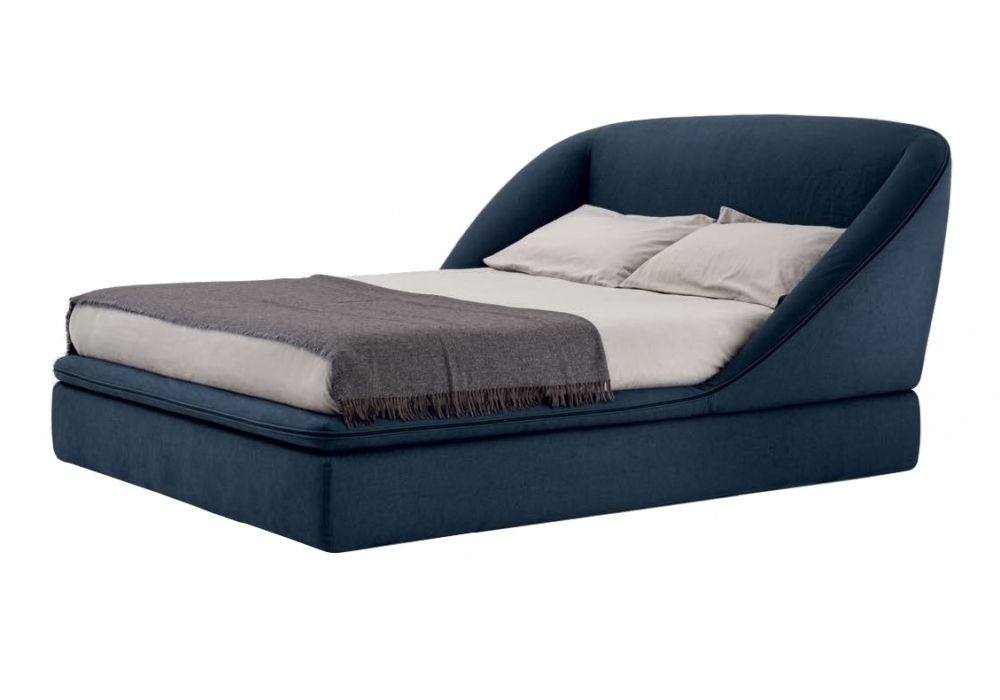Domenica designed by Simone Bonanni for Pianca is a bed with internal honeycomb structure in elements obtained from wood and solid wood with polyurethane foam padding. Feet in black nylon. Upholstery in fabric, leather or synthetic leather. It can be one-color or two-tone, differentiating the lower part and the rear headboard in leather or synthetic leather from the upper part in fabric.