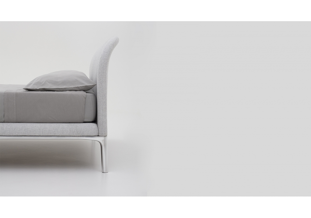 Rada designed by Philippe Tabet for Pianca is a bed with headboard made with internal metal structure covered in printed polyurethane, aluminum melting base and cross -fitting crossings in extrusion of white or black opaque aluminum or in metal finishes. Fabric, leather or synthetic leather upholstery. Only the winner is technically removable.