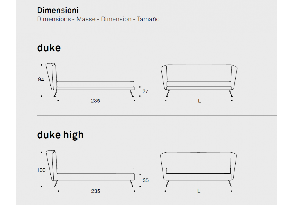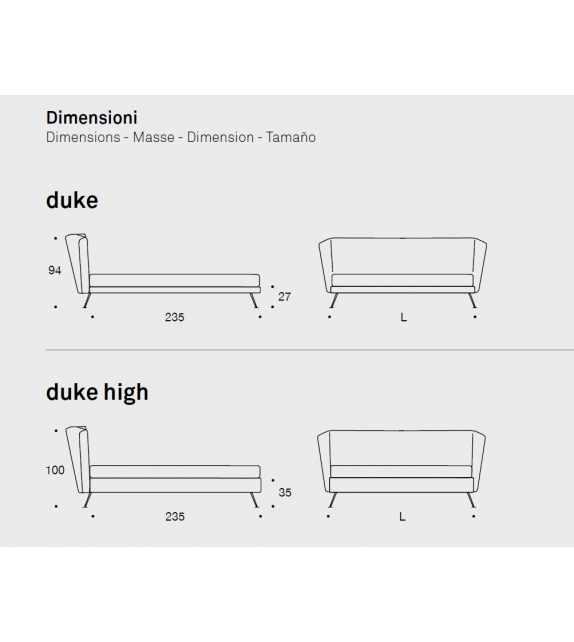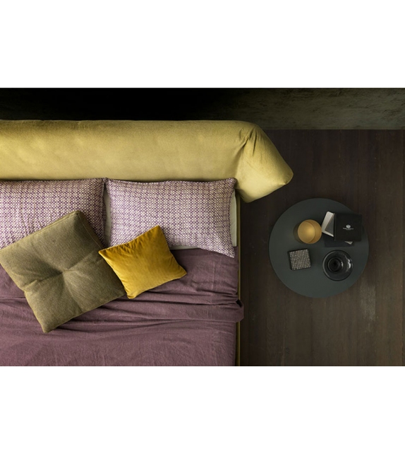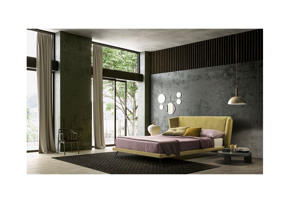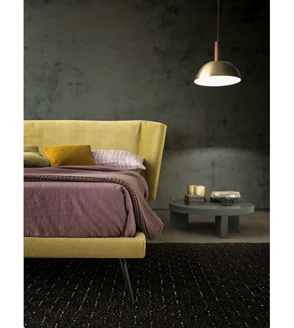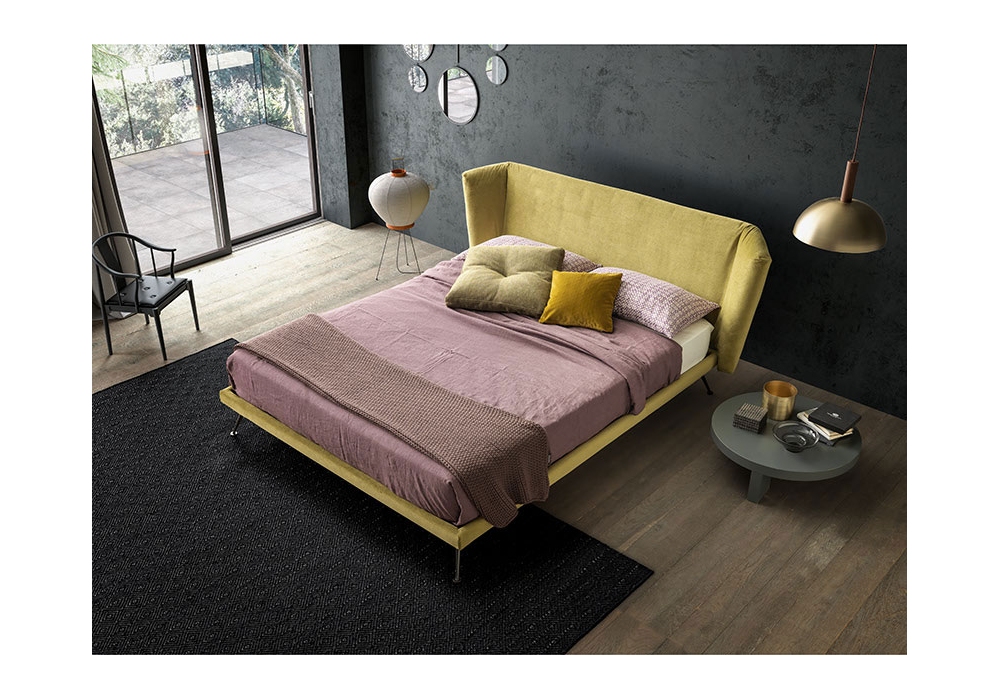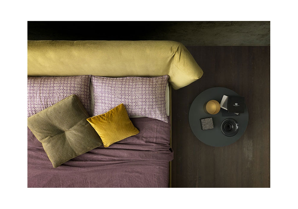 Duke designed and produced by Valentini is a bed with structure in black painted iron or in plywood in the version with storage box, covered in polyurethane. The headboard is in plywood and polyurethane and can be in the low or high version. Available in various sizes and in different finishes, completely removable fabric.