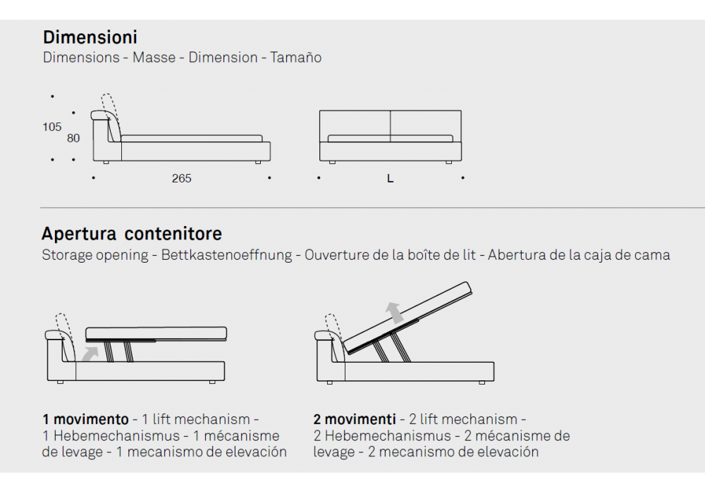 | Dimensions | - 212 x 265 x H 105 cm; - 192 x 265 x H 105 cm; - 152 x 265 x H 105 cm. |